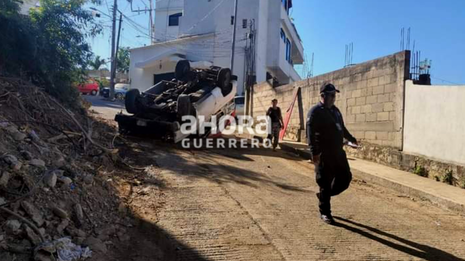 11 pasajeros heridos, tres de ellos graves, es el saldo de la volcadura de una camioneta de pasajeros en la periferia del puerto de Acapulco.
